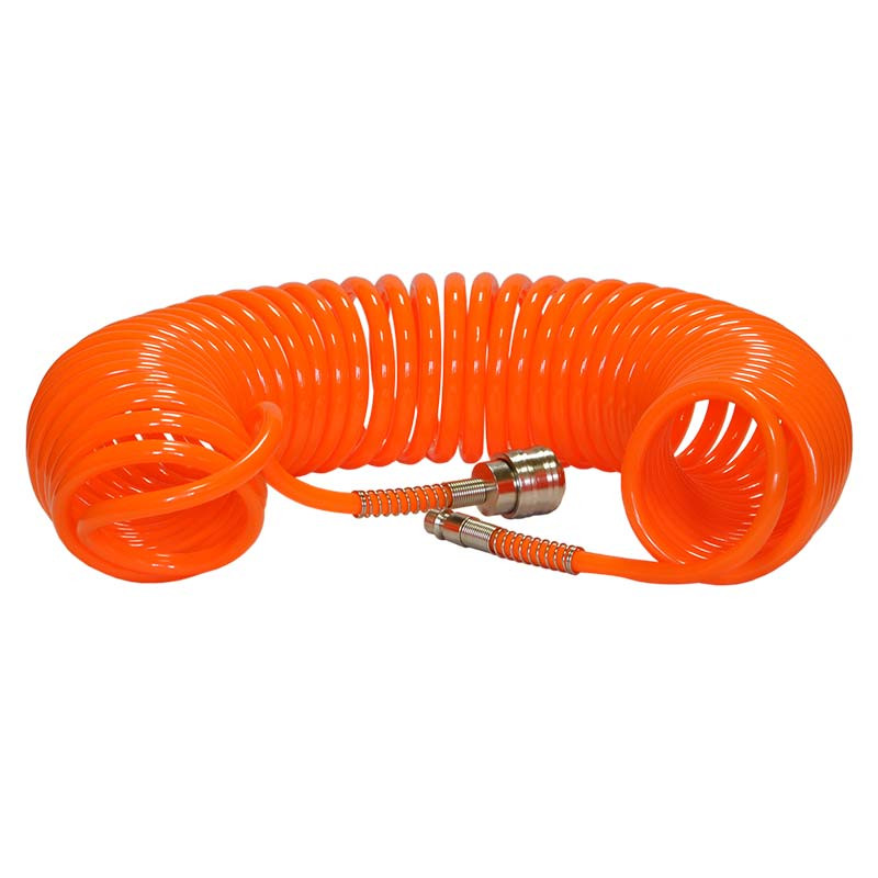 Шланг полиуретановый спиральный применяется для соединения пневматического инструмента с компрессором и линией подачи сжатого воздуха.