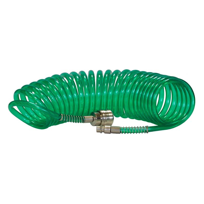 Шланг полиуретановый спиральный применяется для соединения пневматического инструмента с компрессором и линией подачи сжатого воздуха.