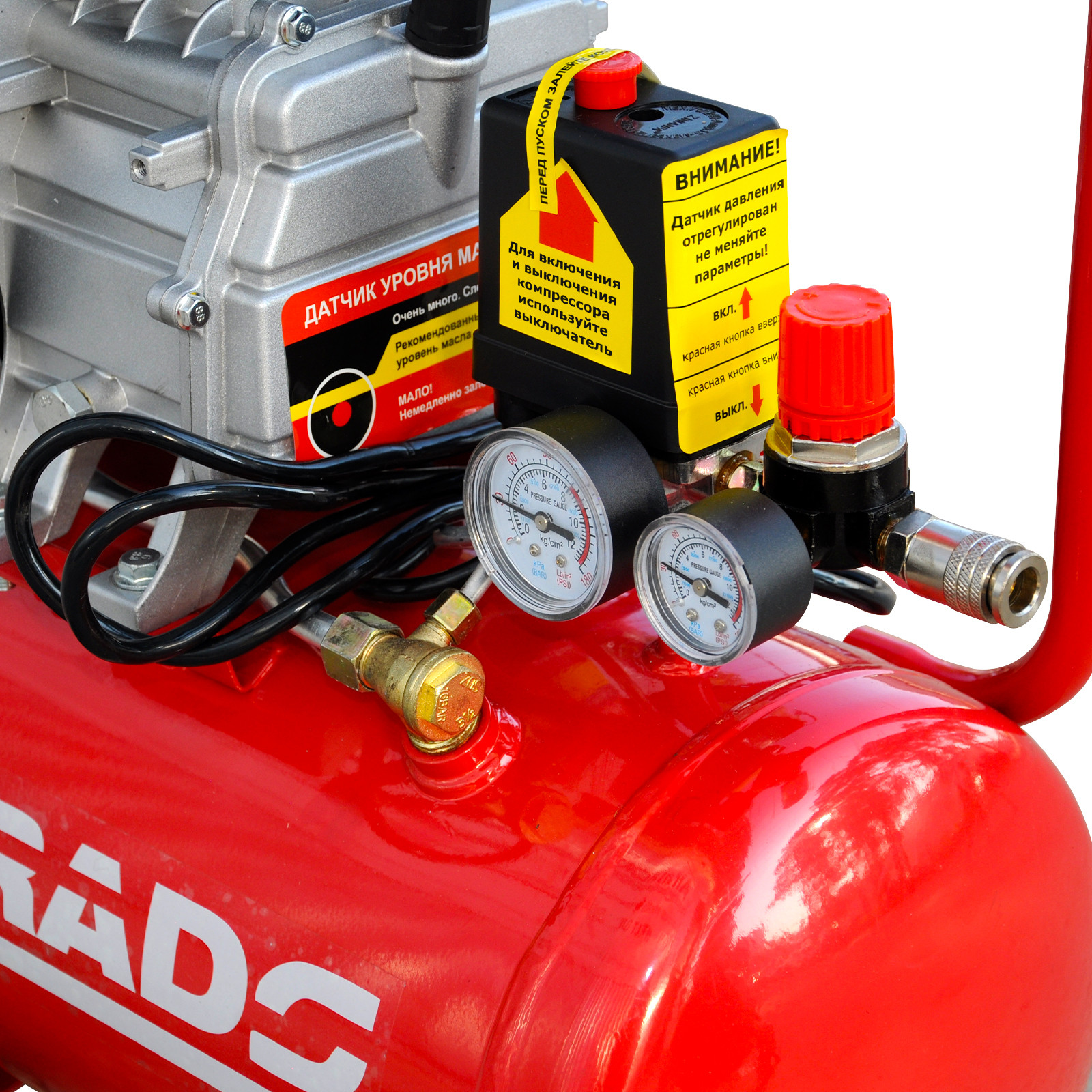 Система масляной смазки замедляет изнашивание деталей и увеличивает срок службы компрессора; Контрольный глазок предназначен для удобства контроля уровня масла;