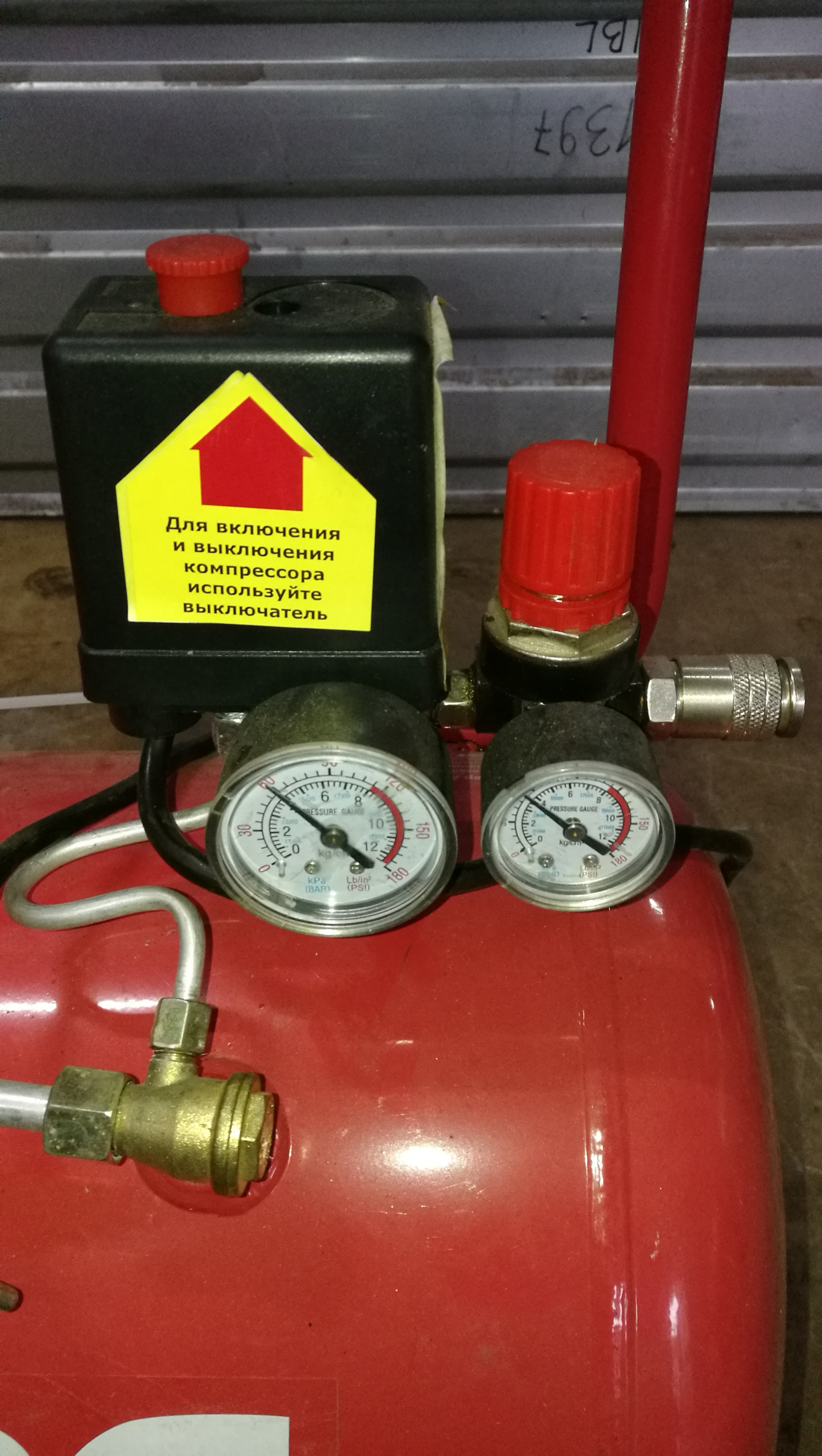 Б/у, не комплект, только то, что на фото. Ресивер герметичен, треснут сварной шов на ручке. Комплектность на фото, без гарантии.