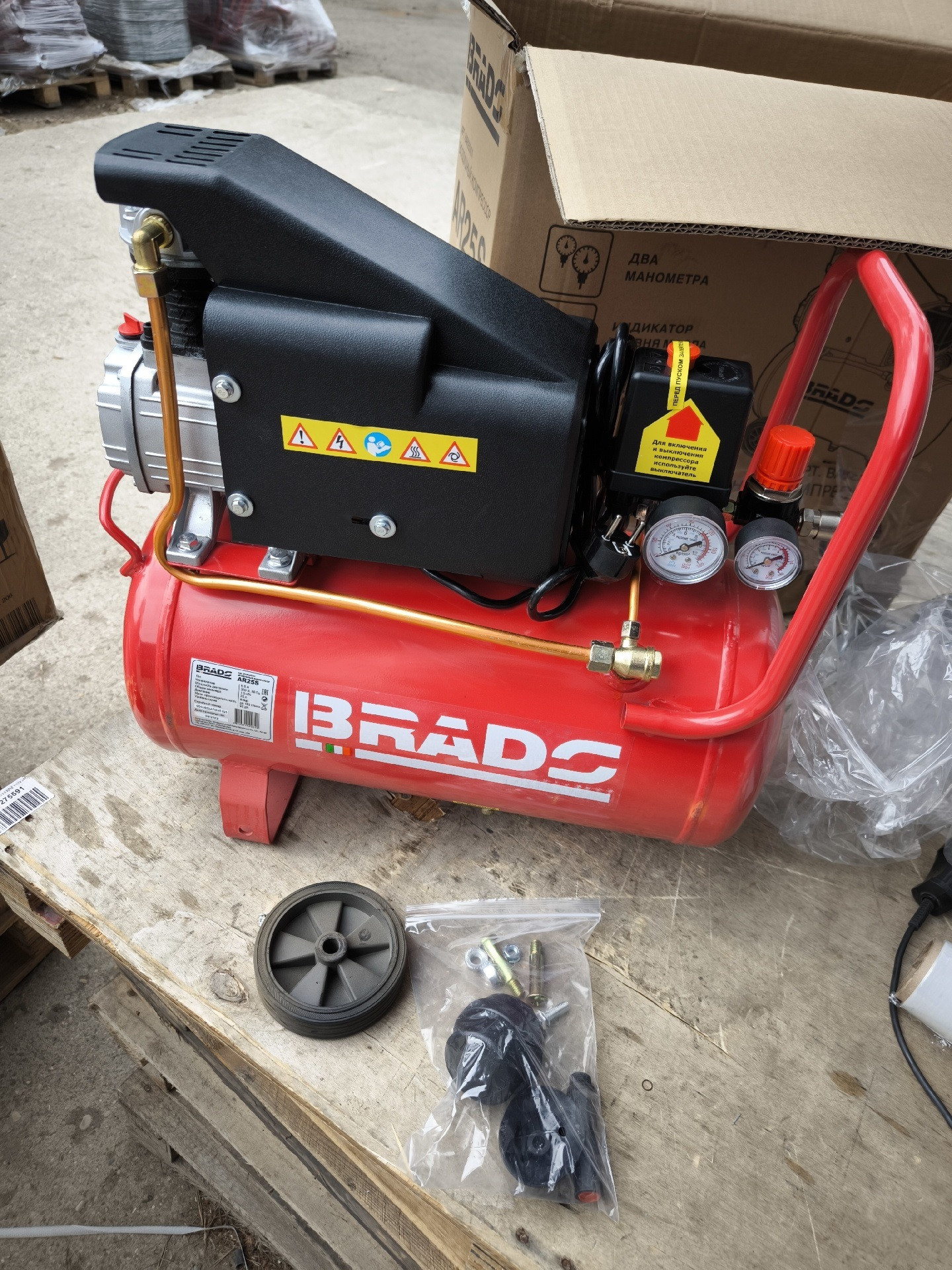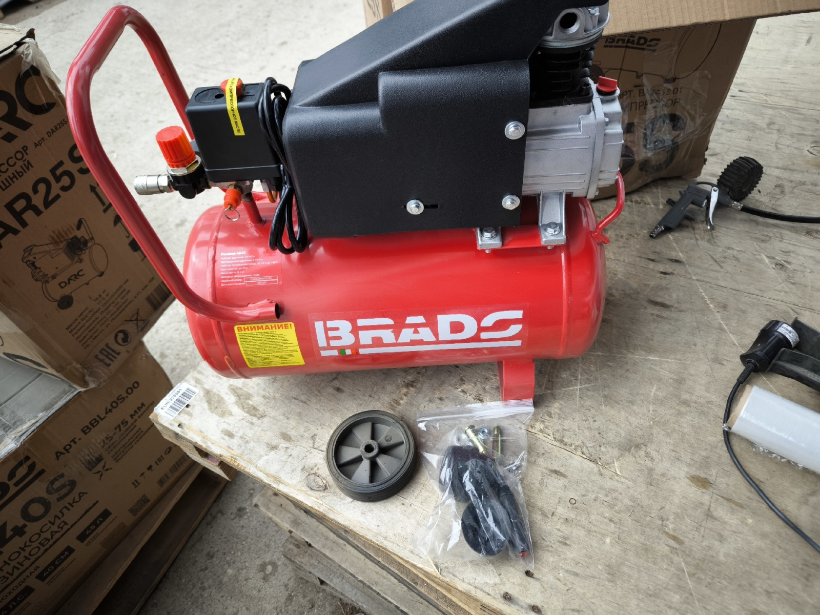 Воздушный компрессор BRADO AR25S новый, повреждена упаковка, 1 транспрот. колесо, см фото 22.05.25 Артикул: BAR25S.00