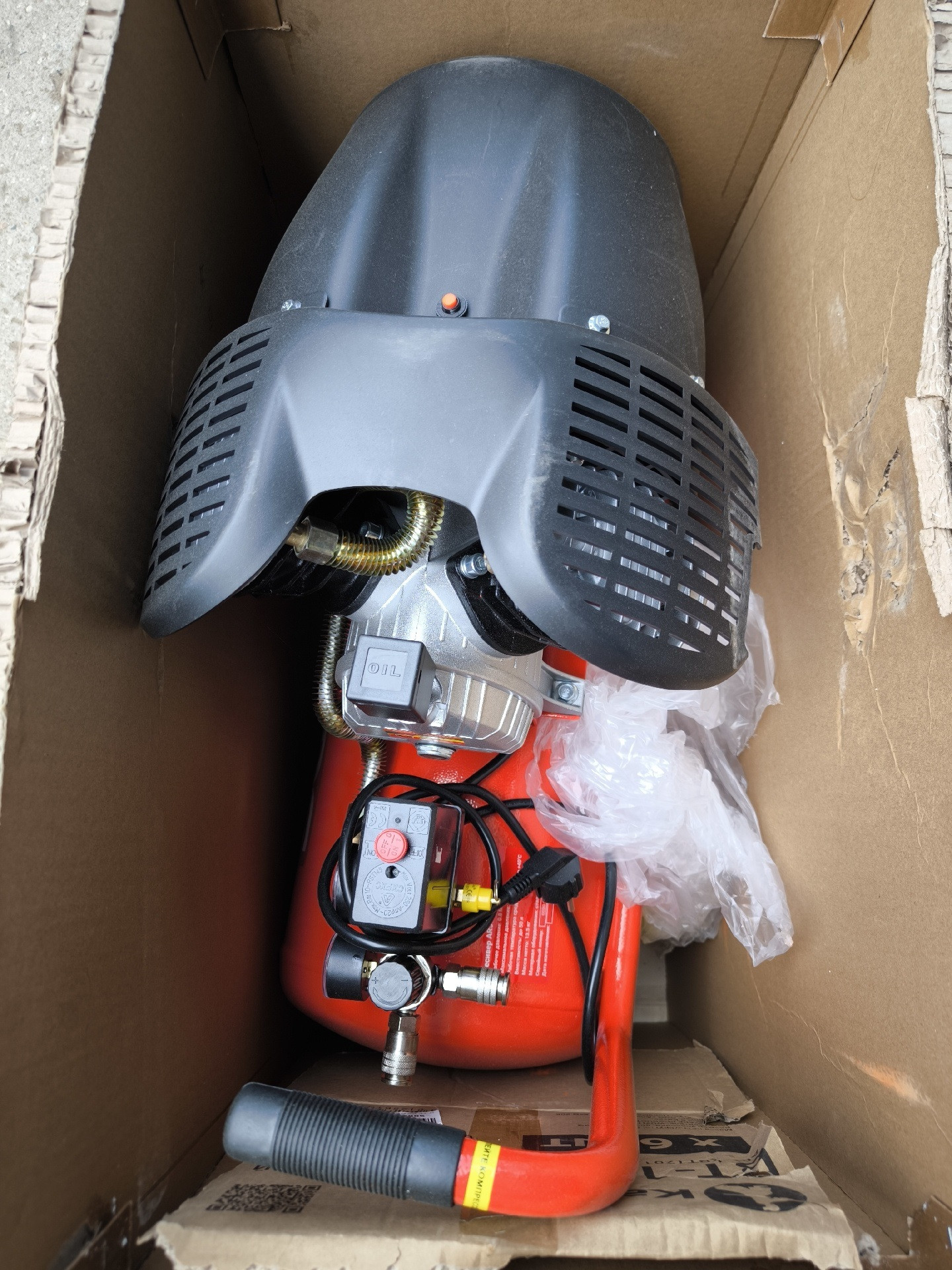 Двухцилиндровый компрессор высокой производительности для работы на небольшом производстве.